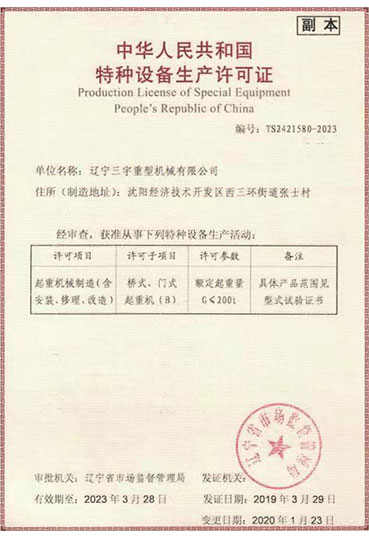 • 三宇人將以“創(chuàng)三宇國際品牌,興中華民族工業(yè)”為己任,努力奮斗,不懈奮斗,加快發(fā)展,繼續(xù)譜寫中國起重機(jī)械制造史上的新篇章。
